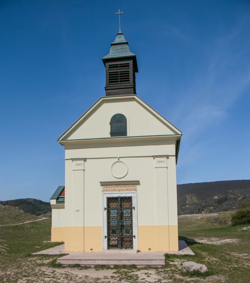 Sokszor bolyongtam már errefelé, rendszerint többedmagammal, általában a Normafától indulva, a Huszonnégyökrös névvel illetett hegy irányában. Most azonban más a helyzet: az Úr 2020. évében egy eddig ismeretlen vírusféle kezdi nagyra hízott egónkat ráébreszteni, mennyire kicsik is vagyunk. A fertőzés terjedési tempójának mérséklése céljából kényszerintézkedések sora született, korlátozván a társas kirándulásokat is. Így aztán, kihasználva a két hidegfront közti szépnek ígérkező tavaszi napot, egyedül indultam útnak.Feledve a megszokott indulási pontot, Budaörsöt választottam. A 240-es buszon – jómagammal együtt – alig néhány, maszkot viselő utas ült. Leszállva a Károly király útnál, rövid kaptató után szerencsére hamar oda hagyhattam a várost. Szűk kis sikátoron értem el a 2006-ban kialakított lépcsősort, ami első úti célomhoz, a Kő-hegy kápolnájához vitt. Az alant futó autópályáról is jól látható sziluett, felfelé lépdelve, mindinkább betöltötte a teret, s hamarosan a kápolna előtt álltam. Kezdtem felidézni, amit Budaörs lexikonjában olvastam. (Budaörs maga régóta lakott hely, ám a török időkben elnéptelenedett. A 18. sz. elején a vidéket akkor bíró Zichy grófok népesítették be, német lakosokkal.)