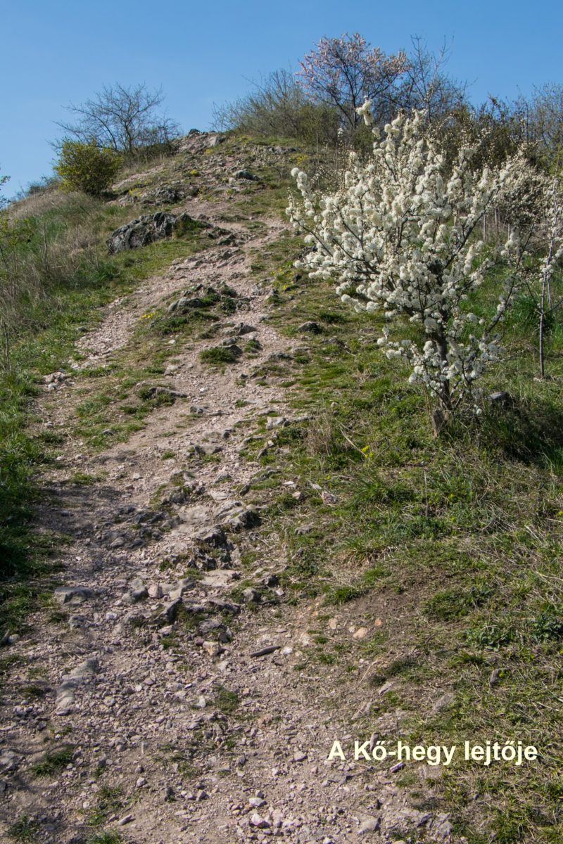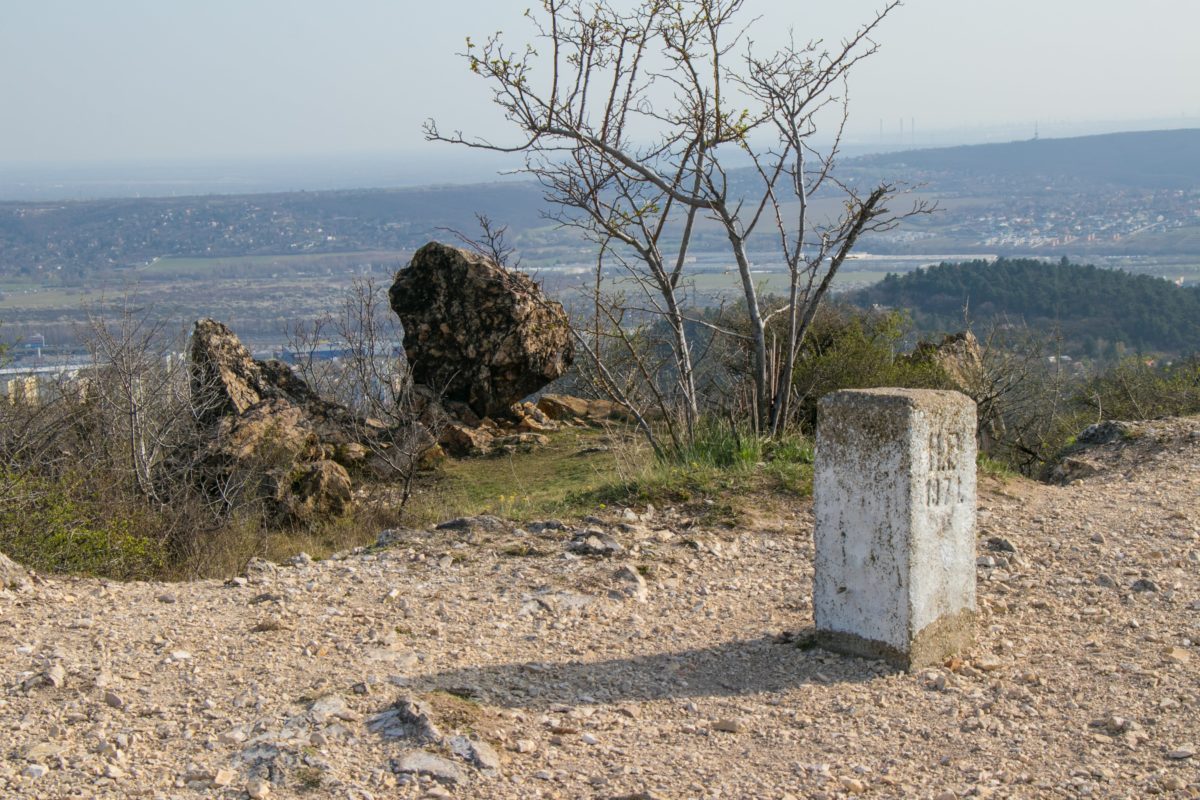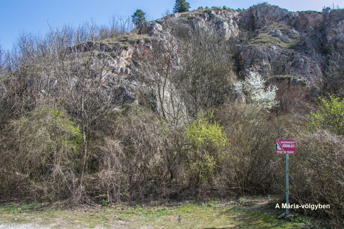 A Kő-hegy és a kápolna környéke láthatóan népszerű hely. A tovább indulni szándékozókon kívül sok, láthatóan helyi lakos is élvezte a melengető napsütést. Kisgyerekes anyukák, családok jöttek-mentek, volt, aki még babakocsit is felcipelt. És egy örömteli megállapítás: a nagy nyüzsgés ellenére alig-alig látni szemetet! Kár viszont, hogy a kápolna történetét egykor elmondó táblán most csak a rozsda virít. A hegyet beszövő ösvényeken sétálva, az elénk táruló körpanoráma unos-untalan megállásra kényszerít. Igaz, dél felé fordulva kissé ijesztő is a túlburjánzott civilizáció, de a másik irányban élvezhetjük a hegyes-völgyes világ látványát. A lakóépületek közül szigetszerűen kiemelkedő hegyről több irányban is leereszkedhetünk, én most egy hosszabbikat választva értem a Mária-völgybe. Ezen végigsétálva, a hegy, meredeken leszakadó tömbjével, teljesen más arcát mutatja.