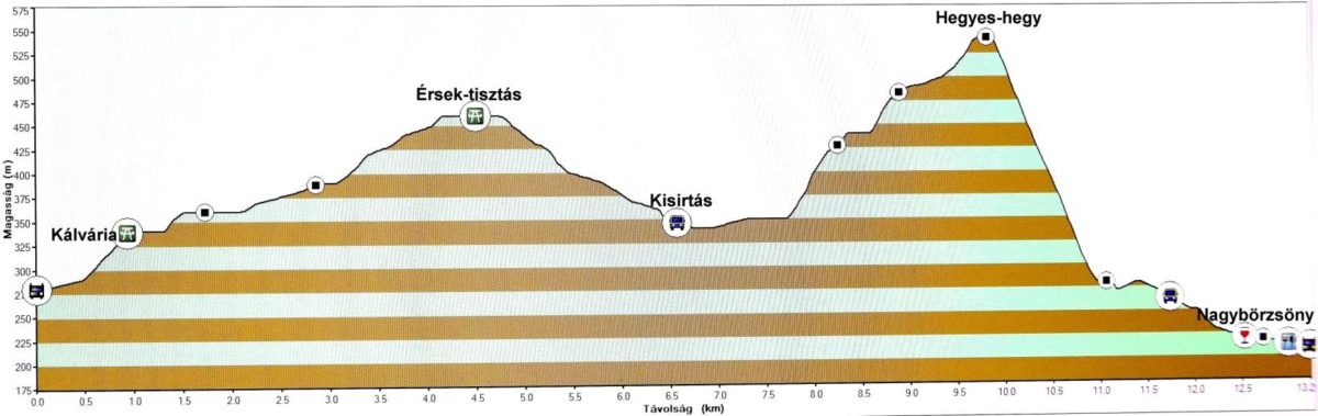 Kóspallag, kálvária – Ló-hegyi patak völgye – Érsek-tisztás – Kisirtás- puszta – Hegyes-hegy – Hosszú-völgy – Nagybörzsöny